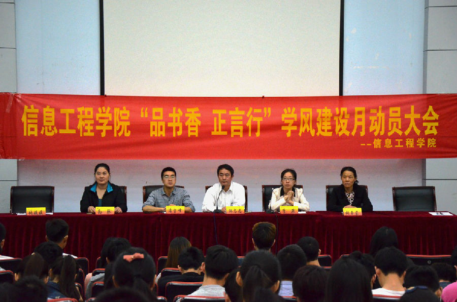 在经济学科楼报告厅举行了以“品书香正言行,我悦读我分享”为主题的学风建设月动员大会。院党委书记韩忠愿,党委副书记潘雪峰,软件工程系副主任李燕,2013级学生辅导员孙脉,2014级学生辅导员张玉蓉及学工秘书张媛媛等老师共同出席此次大会。