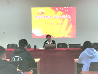 党委书记、本科生第一党支部政治辅导员周亚芳在德业楼406会议室,以“赓续党史精神,端正入党动机”为题,给2021年下半年“党的发展对象”培训班的学员们上了一堂专题党课。