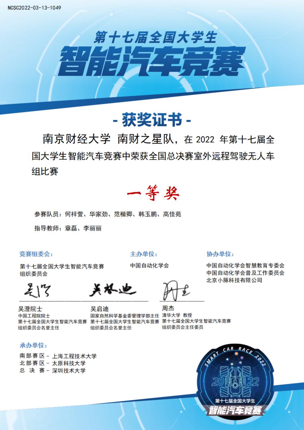 何梓萱、华家劲、范楷卿、韩玉鹏、高佳苑等5名学生组成的“南财之星”代表队斩获“室外远程驾驶无人车”比赛一等奖。巴比伦娱乐场