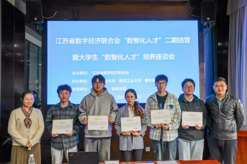 专业设置、人才培养以及校企合作开展情况,并与江苏省数字经济联合会秘书长李敏闪、南京科远智慧科技集团股份有限公司副总裁沈德明以及南京邮电大学、南京工业大学相关部门、院系负责人一道就“数智化人才”培养展开交流探讨。大家认为,数字化领导力是未来人才核心竞争力,数智化转型是新生代企业成长发展的重要路径,同时也是高校人才培养的重要渠道,校企双方应当优势互补、资源共享,深度产教融合,搭建教育新平台,共同为培养具有创新能力的数智化人才贡献力量。
