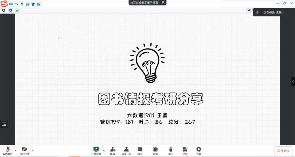 分享会上,主持人首先就考研形势进行了简单介绍,从考研录取率、考研形式变化等方面加深学生对考研的认识。上岸西安电子科技大学图书情报专业的王景学姐主要就择校、学习时间安排和考研复试三个方面讲述自己的经验和建议;上岸华中科技大学计算机技术专业的夏天豪学长讲述了自己考研的历程以及怎样高效的学习,给计划考研的同学提出了自己的建议。巴比伦娱乐场