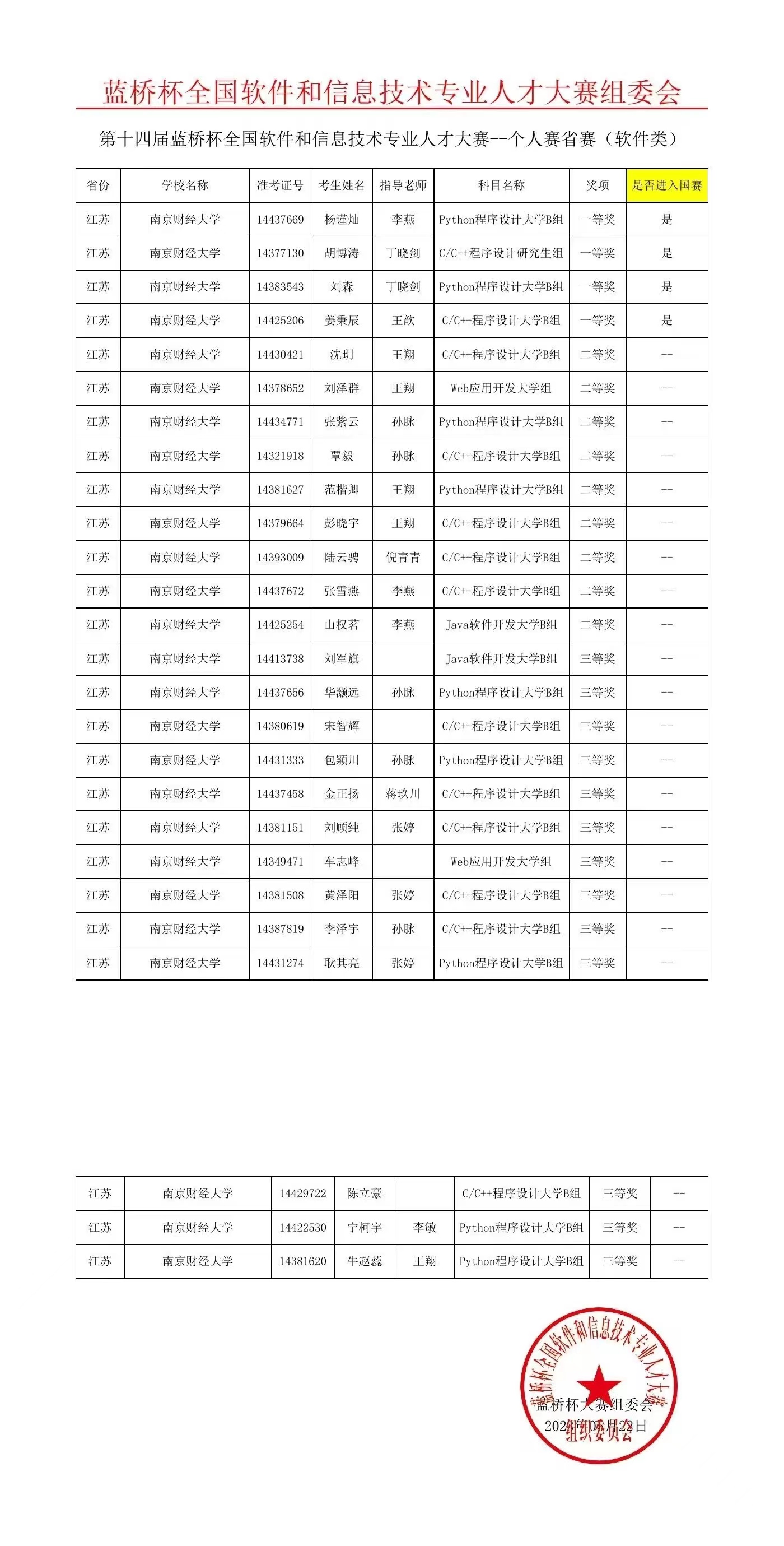 学子参加2023年第十四届“蓝桥杯”大赛获奖名单