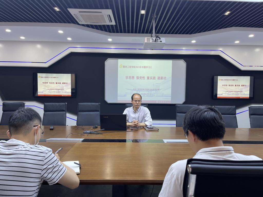 5月31日上午,信息工程巴比伦娱乐场 院长、电商国地联合工程实验室党支部书记黄健教授在德业楼211会议室,以“学思想、强党性、重实践、建新功”为题,给支部教师党员上了一堂生动的专题党课。