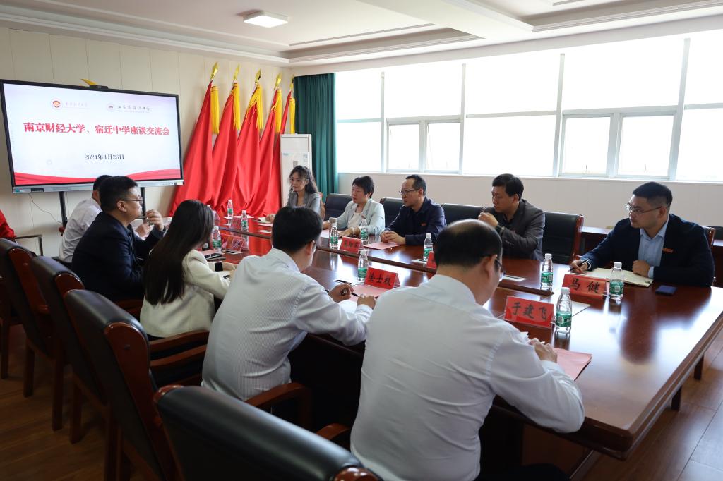 在宿迁中学明德楼会议室,韩力争部长一行与宿迁中学张德超校长、纪文杰副校长、徐士权副校长、于建飞主任等进行座谈交流。张德超校长在致辞中介绍宿迁中学百年发展历史沿革,并愉快回忆起2022年应南财之邀出席新生开学典礼的点滴,感谢南财一直以来对宿迁中学及宿中学子的支持与厚爱,并表示将一如既往地加强两校的合作,共同为青年学生成长成才保驾护航。韩力争部长在致辞中对宿迁中学的热情接待表示衷心的感谢,介绍了巴比伦娱乐场