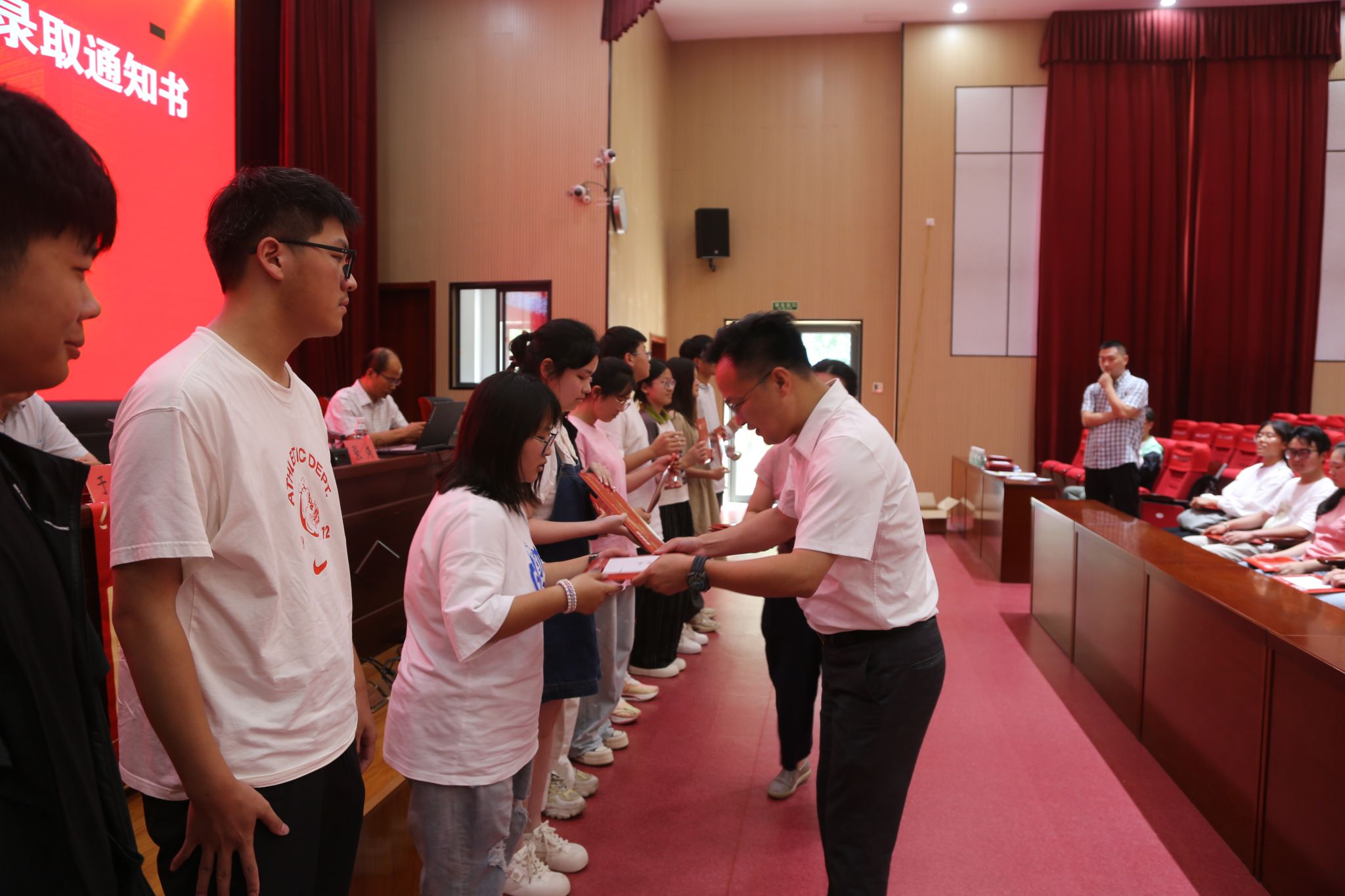 院长黄健、党委副书记马健以及学工办主任张媛媛陪同参加了录取通知书发放仪式。