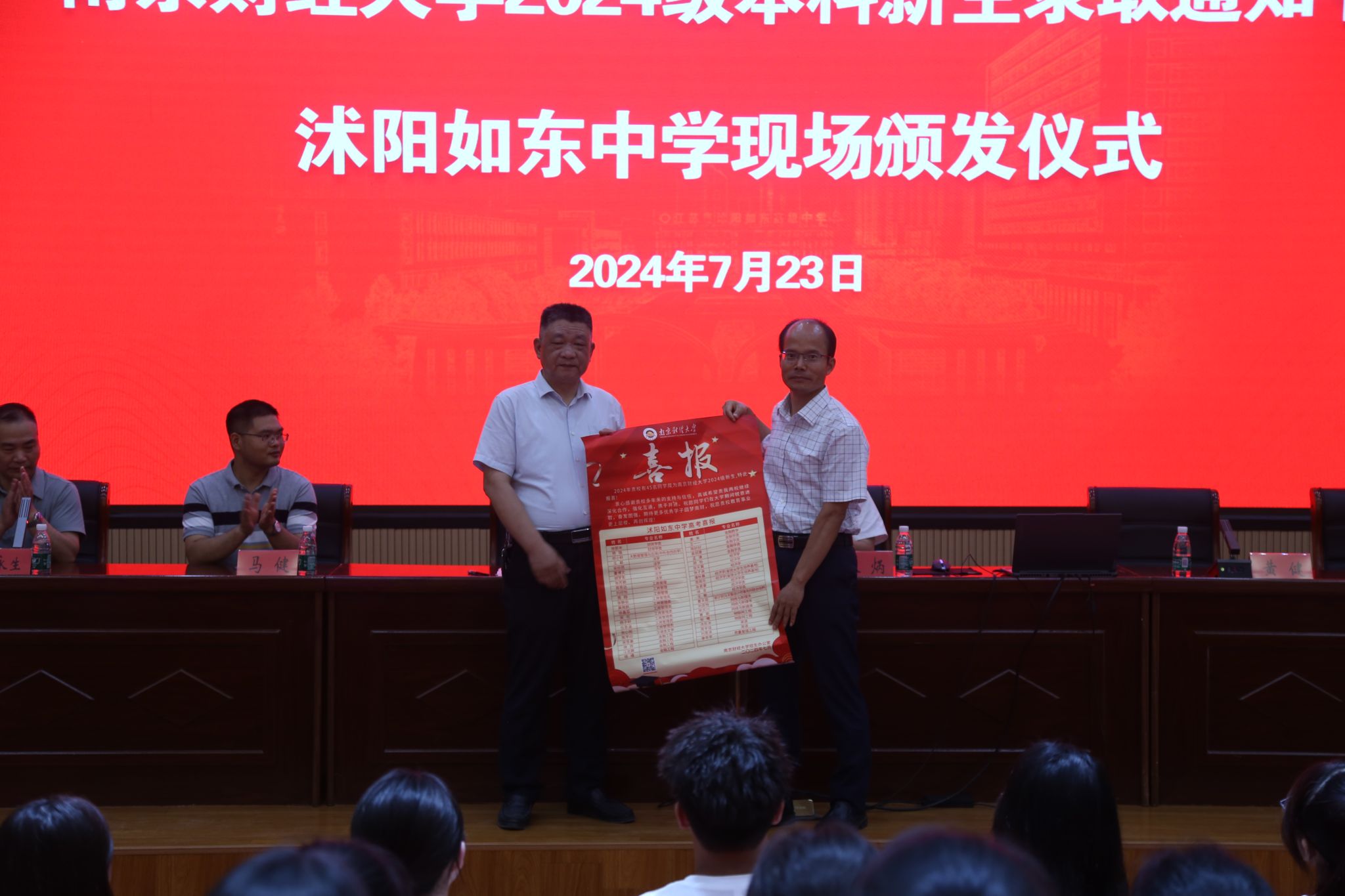 张炳副校长带队赴沭阳如东高级中学颁发录取通知书