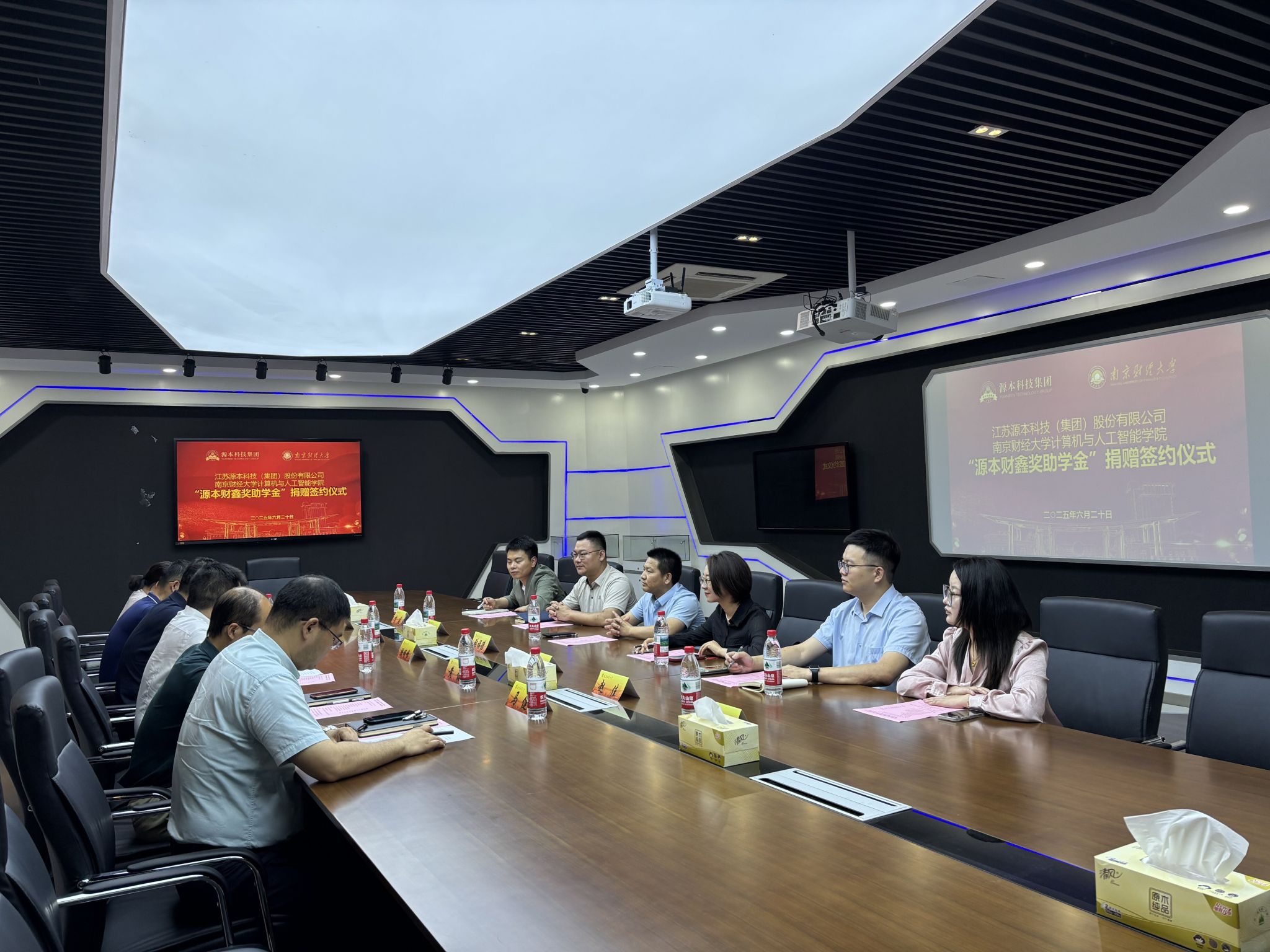 在仙林校区德业楼211会议室举行“源本财鑫奖助学金”捐赠签约仪式。江苏源本科技(集团)有限公司董事长张福德、总经理唐佩、校企合作总监徐敏博、区域总监赵佳、咨询总监付建、市场总监张慧娟,巴比伦娱乐场