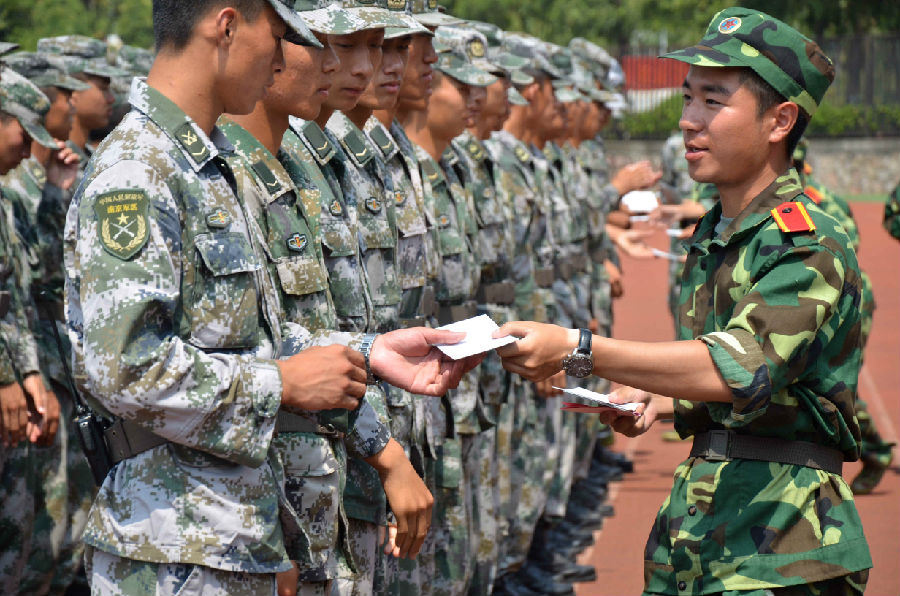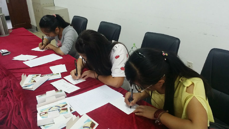 在十三天的军训中,2015级新生在教官们的带领下,挥洒汗水,砥砺奋进,抒写无悔的迷彩青春。为了表达对教官们的感谢与不舍,新生们利用自己空余时间,为参加本次军训的全体86位教官每人准备了一份具有南财特色的“手绘南财”明信片,并在每一张明信片上写下了大家想对教官说的话,感谢他们这些天的教诲与陪伴,衷心对他们说一句:谢谢教官们,你们辛苦了!