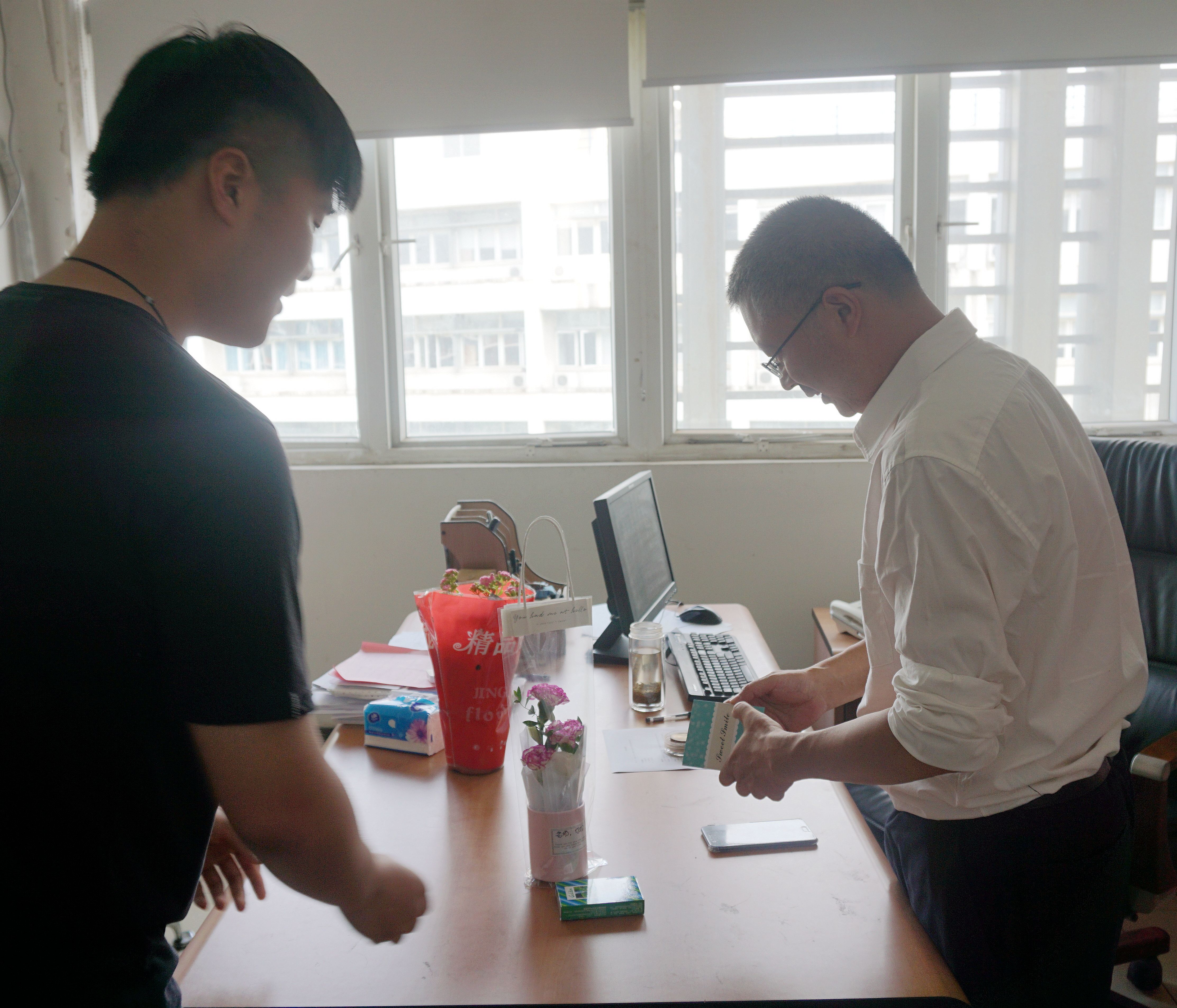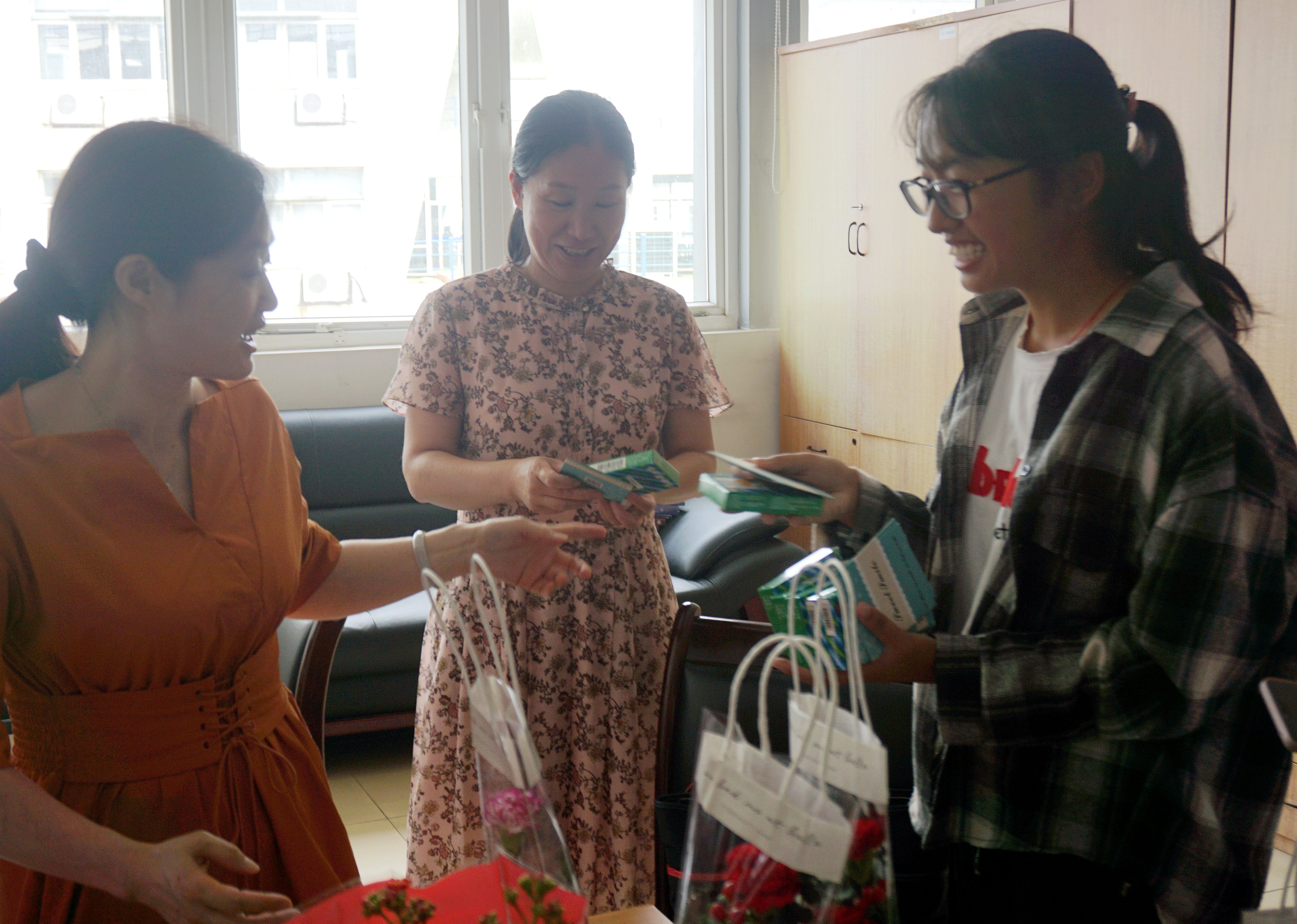 学生会为老师们准备了盒装康乃馨,润喉片以及手写的节日贺卡。鲜花是我们的笑脸,甜甜的滋味是我们对老师的感激之情,而一撇一捺写下的,是我们衷心的祝福。