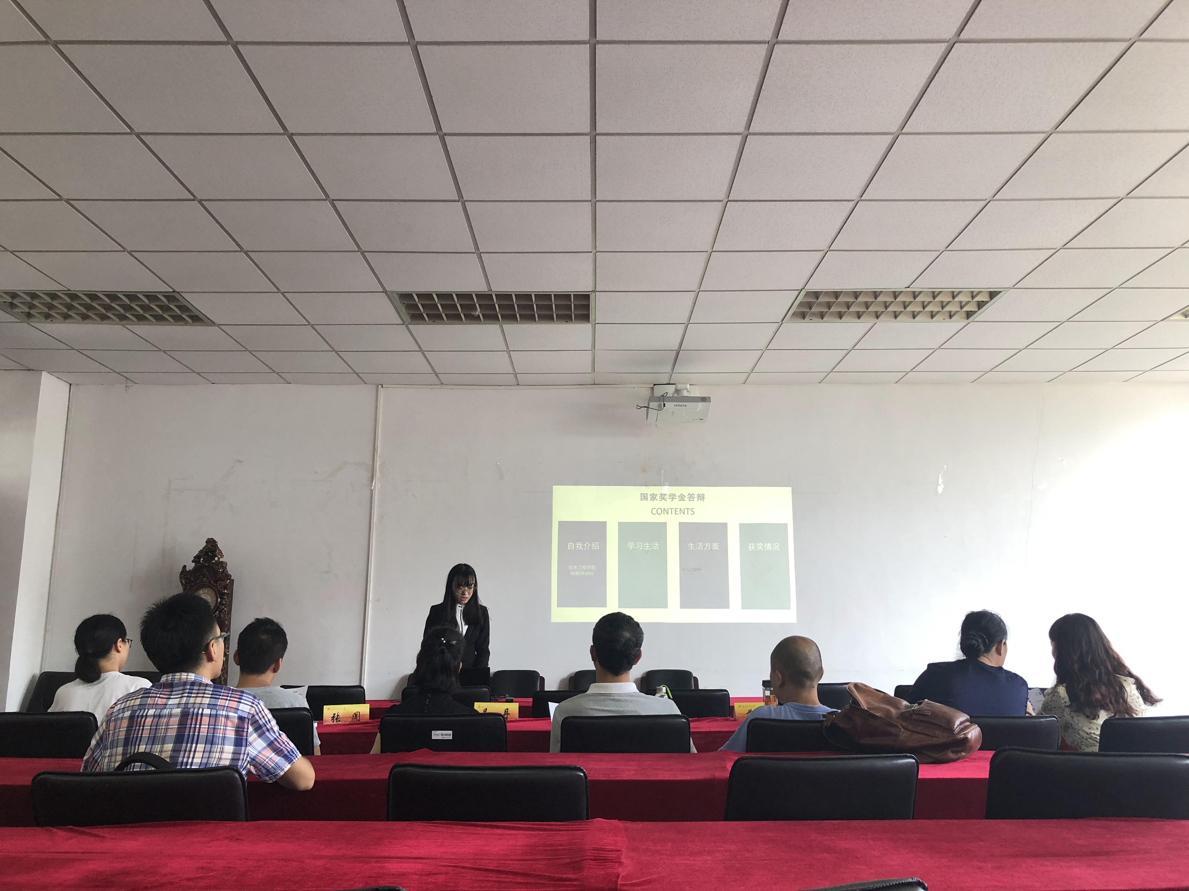 参加本次答辩的学生共有10人,每位学生按事先抽签顺序依次上台,他们结合精心制作的ppt、视频等分别从自身专业学习情况、学科竞赛获奖情况、社会工作、志愿服务等方面展示了自己的突出表现。他们不仅学习成绩优异,思想品德优秀,而且积极参加各类社会实践活动,综合素质较高。选手们的陈述形式丰富多彩,准备充分,能够准确而深入地回答老师们提出的问题。同时,答辩老师都以认真严谨的态度对同学们进行了精辟点评,指出其优点和不足,并提出了宝贵的修改意见。答辩教师们在对学生综合能力进行考核的同时,也给国奖申请者们上了一堂精彩的辅导课。