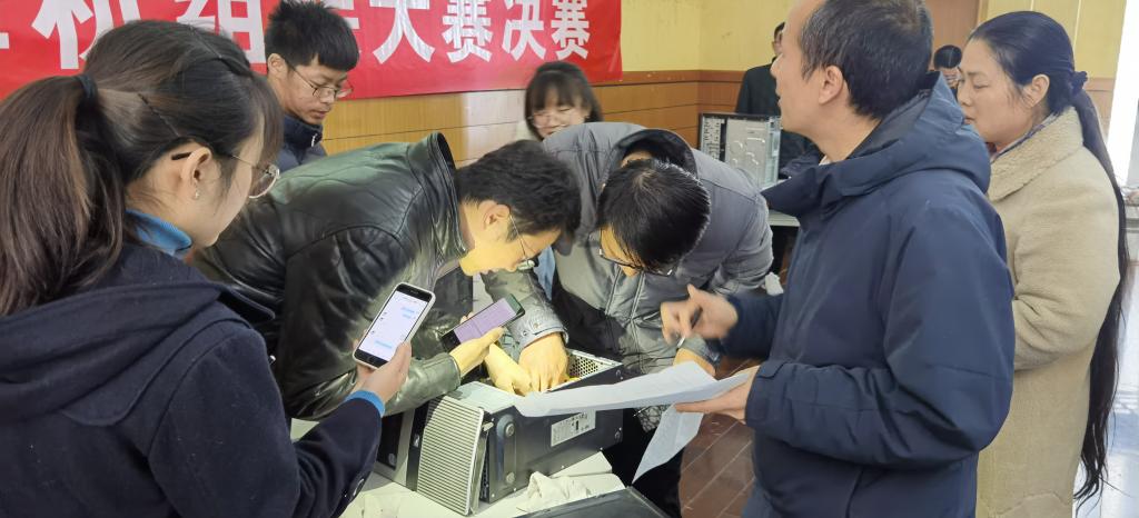 本次比赛共有六支队伍参加,共分为知识竞赛和组装主机两个部分。在知识竞赛的必答环节中,选手们对答如流,分秒必争,取得了优异的成绩。在抢答环节中,选手们眼疾手快,及时按铃抢答,充分展现了自己的才华,令所有观众为之赞叹。在组装大赛环节中,选手们更是将理论知识与实践相结合,充分发挥动手能力,通过团队合作,齐心协力,共同完成了组装任务。在比赛过程中,台下的观众情绪高涨,毫不吝啬自己的掌声,给予选手们充分的鼓励,现场氛围非常活跃。组装完成后,评委老师们上台检查了各组选手的完成情况,并为各组选手进行评分。最后,蒋久川老师对各组选手进行了点评,在肯定选手们的动手能力的同时,老师也指出了提出各队的不足,给参赛队伍以及组织单位提出了宝贵的建议,队员们都受益匪浅。