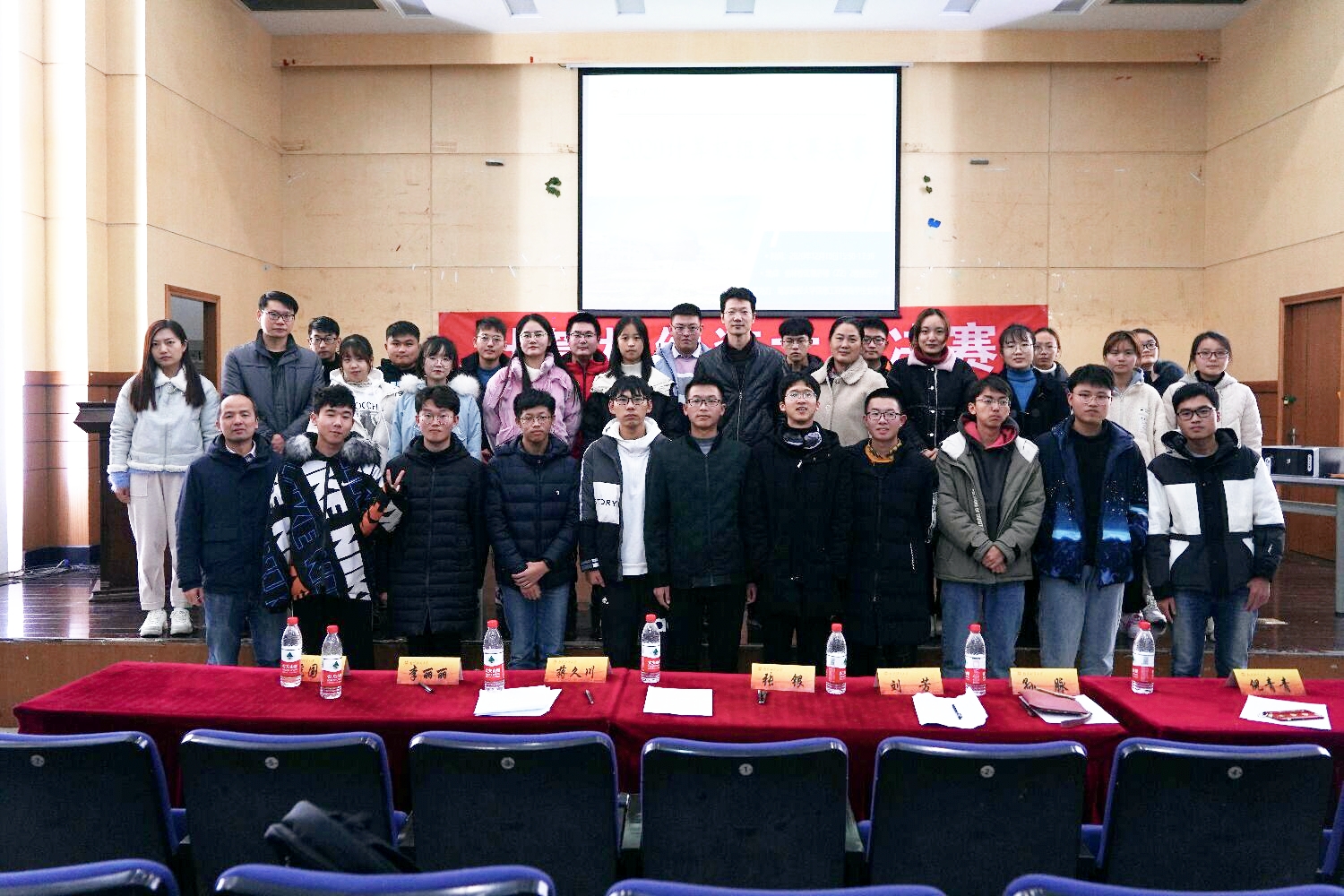 19级和20级班主任(张银、蒋久川)、实验室指导老师(李丽丽、杭国柱)、辅导员(倪青青、孙脉、刘芳)7位老师组成,参赛队员主要有19级和20级代表队。