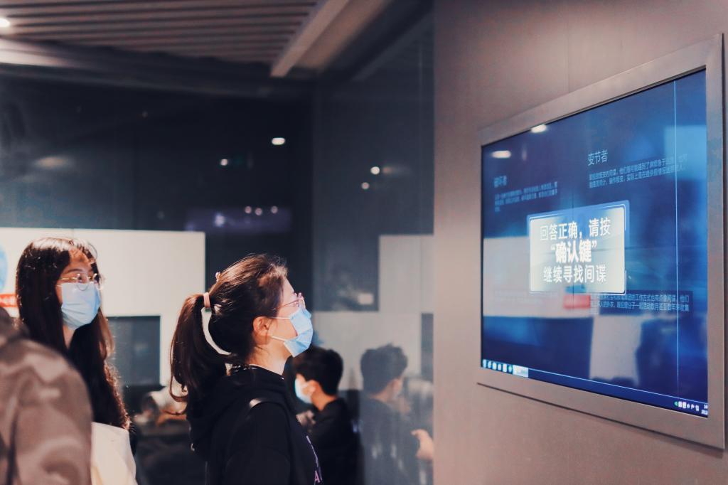 展馆大门正前方红色花岗岩路面上镌刻着“1921”“1927”“1949”“1983”四组具有特殊意义的数字,大门西侧是社会共建墙,寓意着“国家安全,人人有责”。整个展览由前厅、序厅、三个主展区以及尾厅六个部分组成,分别呈现着各时期的国家安全形势及国家安全法律知识。“展厅中巧妙的利用了场景艺术再现技术,我在观看展板的同时身临其境,仿佛同前辈们一起经历了那段不寻常的岁月。”软件(嵌入式)1901班的祝嘉雯同学一边赞叹一边通过触摸屏查询设备,搜索了自己感兴趣的资料。