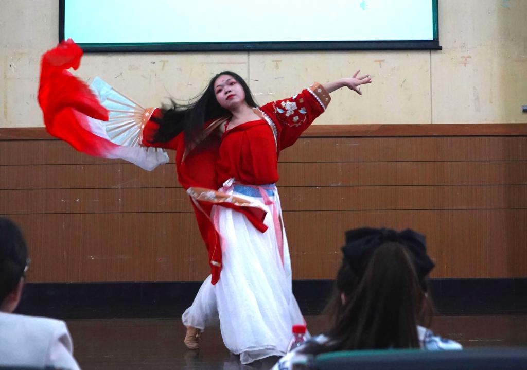 “飘然转旋回雪轻,嫣然纵送游龙惊。”刚一开场的舞蹈就让刘芳老师赞叹不已,“学生们多才多艺,国学大赛给了他们学习国学知识的机会,更给了学生们展现自我的平台。”舞才罢,一曲《阳关三叠》马上就将人带入了“劝君更尽一杯酒,西出阳关无故人”无限留恋中。