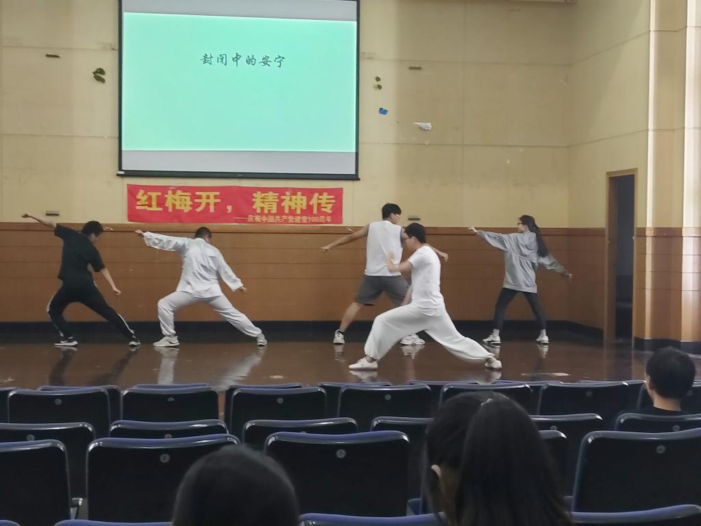 这一场别开生面的活动不仅积极响应了党的百年,还别出心裁地宣扬了传统武术,不忘初心、牢记使命,用传武表现共产党人坚定的意志与不灭的信念,打出了南财学生的精气神,展现了南财学生的优秀品质。