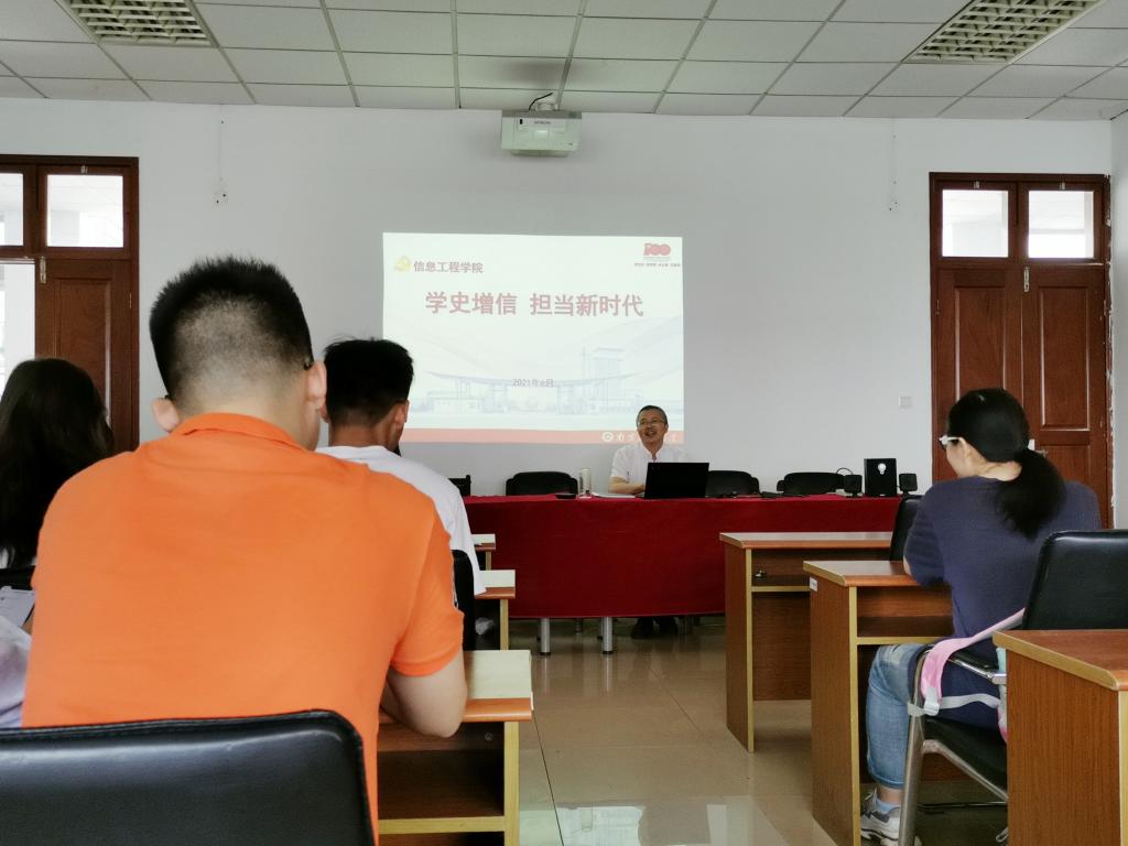 6月4日中午,信息工程巴比伦娱乐场 院长、政治辅导员曹杰教授在仙林校区德业楼406 为2021届全体本科毕业生党员上“学史增信,担当新时代”的专题党课。