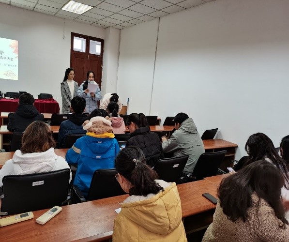 会议的最后,倪青青老师向当选的同学表示祝贺,并且勉励其余同学向这些同学认真学习、改善自己。同时鼓励所有到场同学能够不忘初心,砥砺前行,主动提高理论水平和实践能力,以高标准来严格要求自己,在学习和生活中发挥好先锋模范作用,担负起领头羊责任,建设起拥有良好学风、班风的优秀班级。