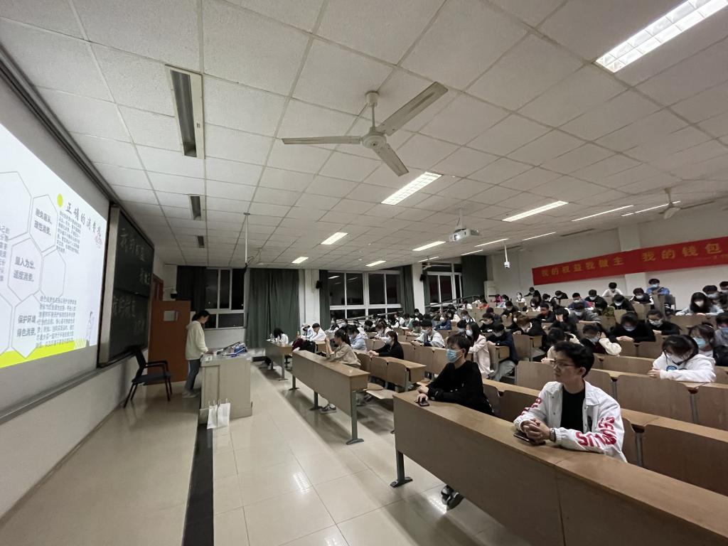 活动中,志愿者通过情景剧方式,幽默生动地演绎了直播网购案例、剖析商家种种诱导行为,引发同学们思考,警醒同学们避免落入消费陷阱;引导同学们树立正确的消费观,自觉纠正过度消费、超前消费;倡导节约适度、绿色低碳、文明健康的生活方式和消费模式。