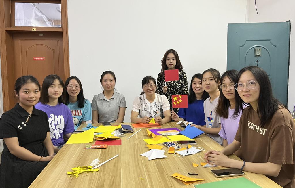 最后,周亚芳书记还与同学们一起动手,手工制作五星红旗,喜迎国庆佳节,献礼党的二十大。