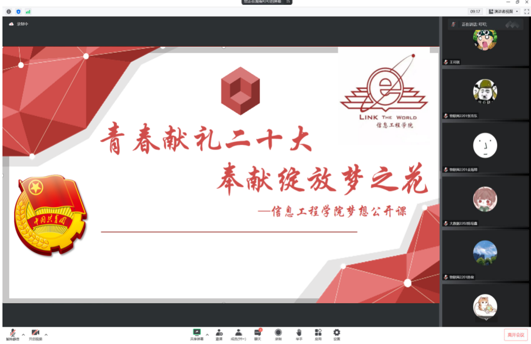 为激励新时代青年在为人民服务中茁壮成长,在艰苦奋斗中砥砺意志品质,在不断奉献中绽放理想之花,11月6日下午,信息工程巴比伦娱乐场 在线举办了“青春献礼二十大,奉献绽放梦之花”梦想公开课,2022级全体同学及青马班全体学员参加。