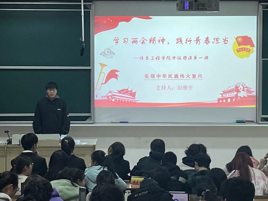 活动中,同学们集体观看了《十四届全国人大一次会议闭幕式》中习近平总书记发表的重要讲话,认真学习重要讲话精神。本次团课主讲人田维宇向大家分享了两会上的“青春之声”。其中,短道速滑运动员任子威关注青少年身心健康,提出推进体教融合,夯实后备人才基础;“95后”阿布洛哈村党支部书记吉列子日投身乡村振兴大舞台,呼吁年轻人回到乡村,为村庄注入“新鲜血液”。年轻的代表委员们,心系祖国,履职尽责,不断为推进中国式现代化贡献青春力量。