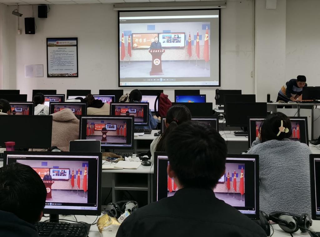 党委理论学习中心组、各党支部、各班级团支部分别借助中心组学习会、党员学习日、主题班会、主题团课等观看学习了校党委书记张利民主讲的“开学第一课”——《让青春在新时代绽放绚丽之花》。