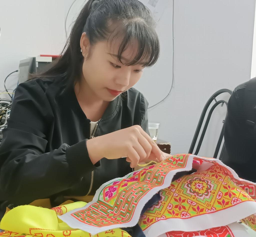 马学珍女士之前外出学习,前往广东博览会收获颇多,看到了很多新型的创意设计,提供了不少思路。也与高校方面的设计人才进行交流,把苗绣以多种形式融入到更多的产业中是发展苗绣必须做出的尝试,也是传承创新的重要一步。提及新一代的传承人时,马学珍女士介绍到,村里的小朋友们从小学就开始上苗绣课,有专业老师授课,这也是响应国家政策,在开展素质教育的同时,结合当地特色,开展特色课程。