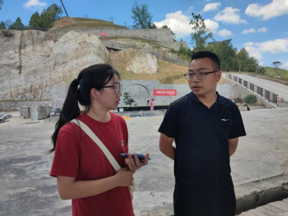景区负责人向实践队员们解释景区的施工建设,五万亩的玉簪花在旁边山中,等景区这侧的施工结束后,会开始安装索道。之后便详细介绍起景区,景区是集文化体验、康养度假、自然观光、极限运动为一体的综合性旅游区。在不同片区有不同的活动。考虑到当地的发展,景区免费提供一些摊位小卖部给当地人展示苗族的特色物品,如上山村刺绣蜡染等非遗物品,促进当地人经济发展。负责人提到景区建设一切以安全为主,在通往玉簪花片区及其他各个片区需要通过索道,索道全长2.2公里,5米每秒的速度,大致十分钟能到玉簪花片区。索道的安装要求很高,一是山路崎岖,二是需要严格保证安全,这也导致景区竣工时间不能确定。负责人表示通过玉簪花景区的打造扩大金沙知名度,吸引游客的同时传播苗族非遗文化,将文旅融合作为突破口带动岩孔发展。