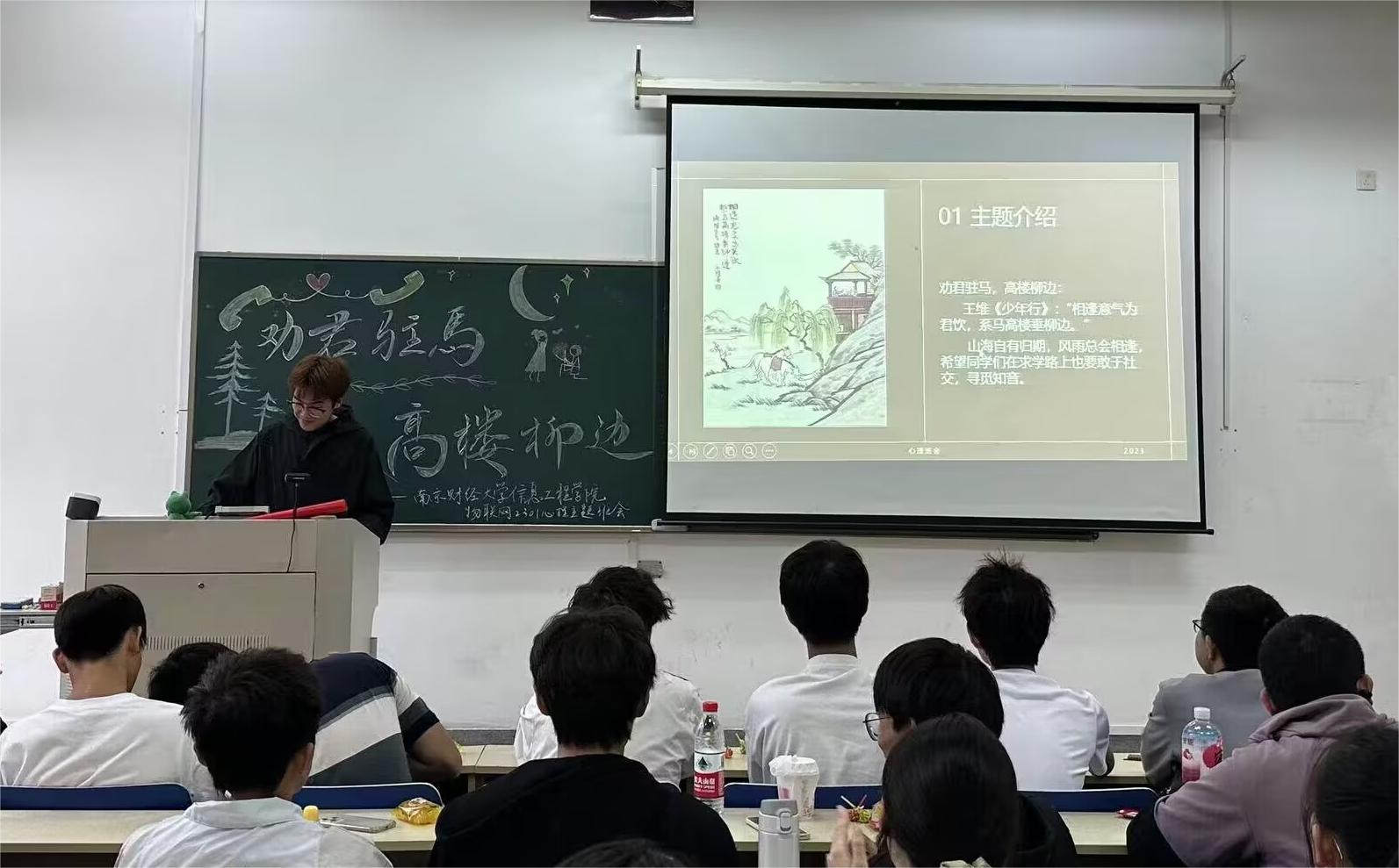 9月24日,物联网2301团支部开展以“劝君驻马,高楼柳边”为主题的心理班会。主持人通过讲解社交真实案例,引出“情感”话题;组织同学们共同观看短视频,进一步了解情感;进行纸条解惑游戏,鼓励同学们积极讨论自身所面临的困惑和压力,分析其中的心理问题,并学习如何缓解压力。
