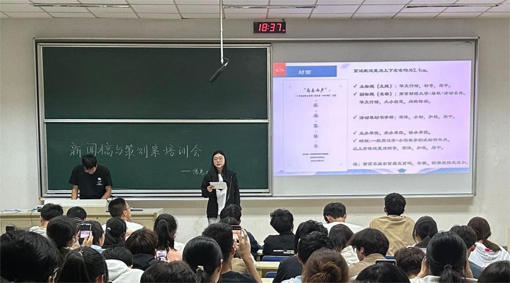 同学们认真聆听,积极记录培训要点。在特邀同学的指导和帮助下,学习如何进行活动策划以及撰写新闻稿。此次培训会,规范了新闻稿格式,培养了同学们从不同角度思考和规划活动的能力,为未来的工作和学习打下了坚实的基础。