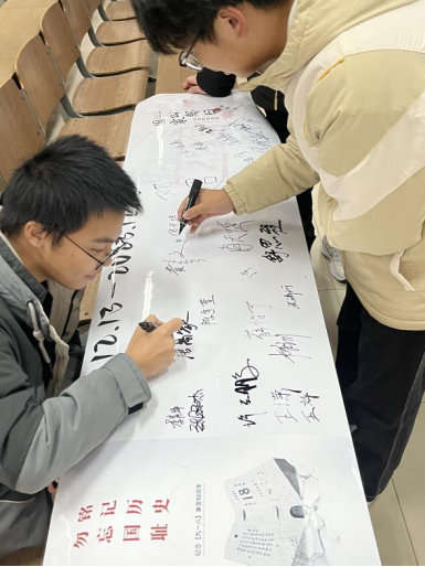 国行公祭,泪洒神州,愿世界和平,国泰民安。活动以呈现出和平画卷的形式结束,进一步提醒同学们勿忘国耻,铭记“落后就要挨打”的历史教训。希望每一个青年大学生牢记历史,珍惜和平,积极投身到国家和社会的建设当中,高举中国特色社会主义伟大旗帜,振奋民族精神,刻苦学习,为实现中华民族的伟大复兴而努力奋斗!