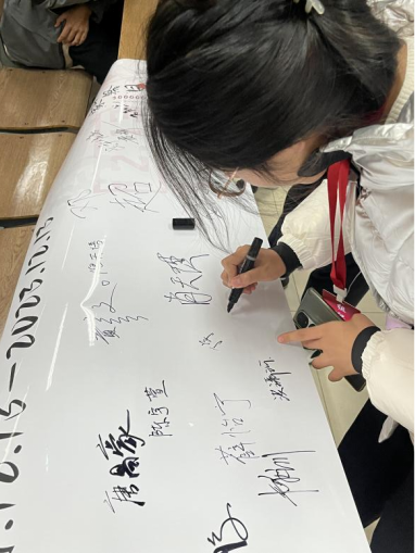 随后,分团委心理部干事黄彦文带领现场同学进行宣誓。同学们昂首挺胸,脸上充满了决心与坚毅,在此刻,他们的心灵与信仰凝聚在一起,向国家和人民宣誓,向那些为了国家付出生命的英烈们宣誓。