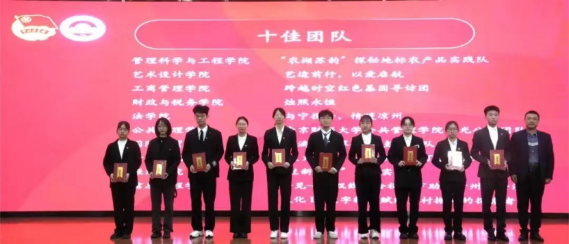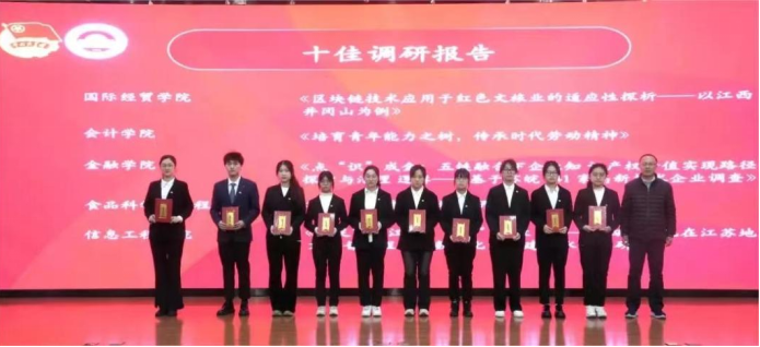 其中,“绣见——双线融合视域下助力贵州省金沙县文化 IP 数字转型赋能乡村振兴的探索者”团队获评校“十佳团队”、《“足”遍江苏,“信”传红色——新四军文化在江苏地方的普及程度及数字化资源建设水平调研》报告获评校“十佳调研报告”、大数据2102班龙文雪同学获评校“十佳个人”、大数据2102班施熠同学获评校“十佳通讯员”。另有2支团队获评校“优秀团队”、2支团队调研报告获评校“先进调研报告”、15人获评校“先进个人”、2名指导老师获评校“先进工作者(教师)”、2人获评校“优秀通讯员”。