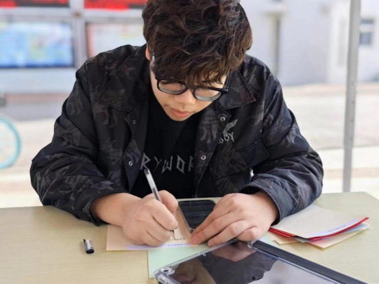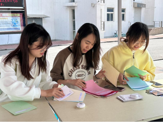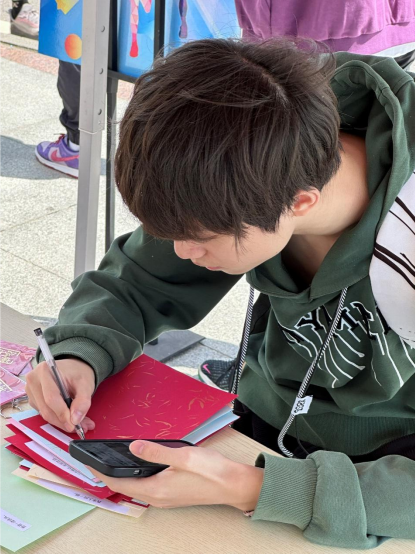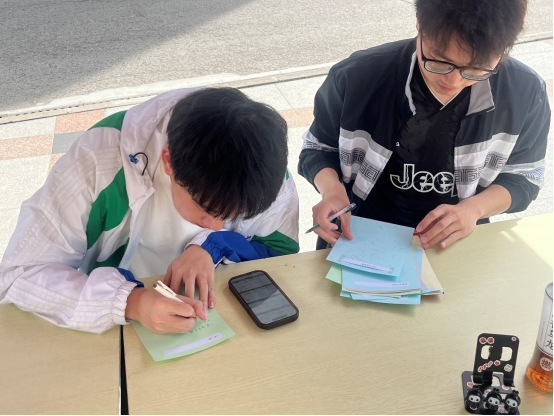 以诗传情,以诗言志。首先,在志愿者的引导下,同学们来到明信片前,在上面写下与清明时节有关的古诗句,同时细细体会诗人当时的心境,表达自我体悟。许多同学都表示了对革命先烈的深切怀念和无限哀思。