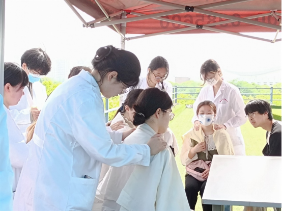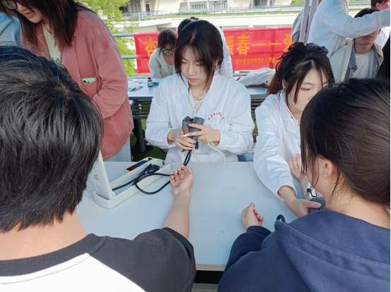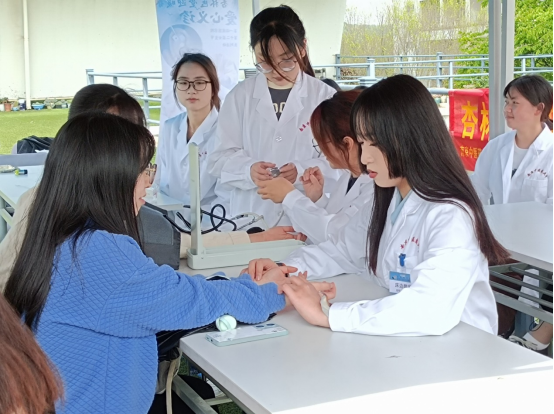 受到专业培训的南京中医药大学志愿者们分为花茶组、血压测量组、推拿组与耳穴组四组同时进行义诊,为同学们把脉后,针对结果对症下药,给出相应的调理建议。从中,同学们既感受到了中医药的独特魅力,也提高了对中医药文化的了解,越发认识到身体健康的重要性。