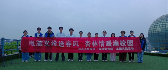 青年志愿者协会于德业楼三楼草坪举办了 “电脑义诊送春风,杏林情暖满校园”义诊活动。