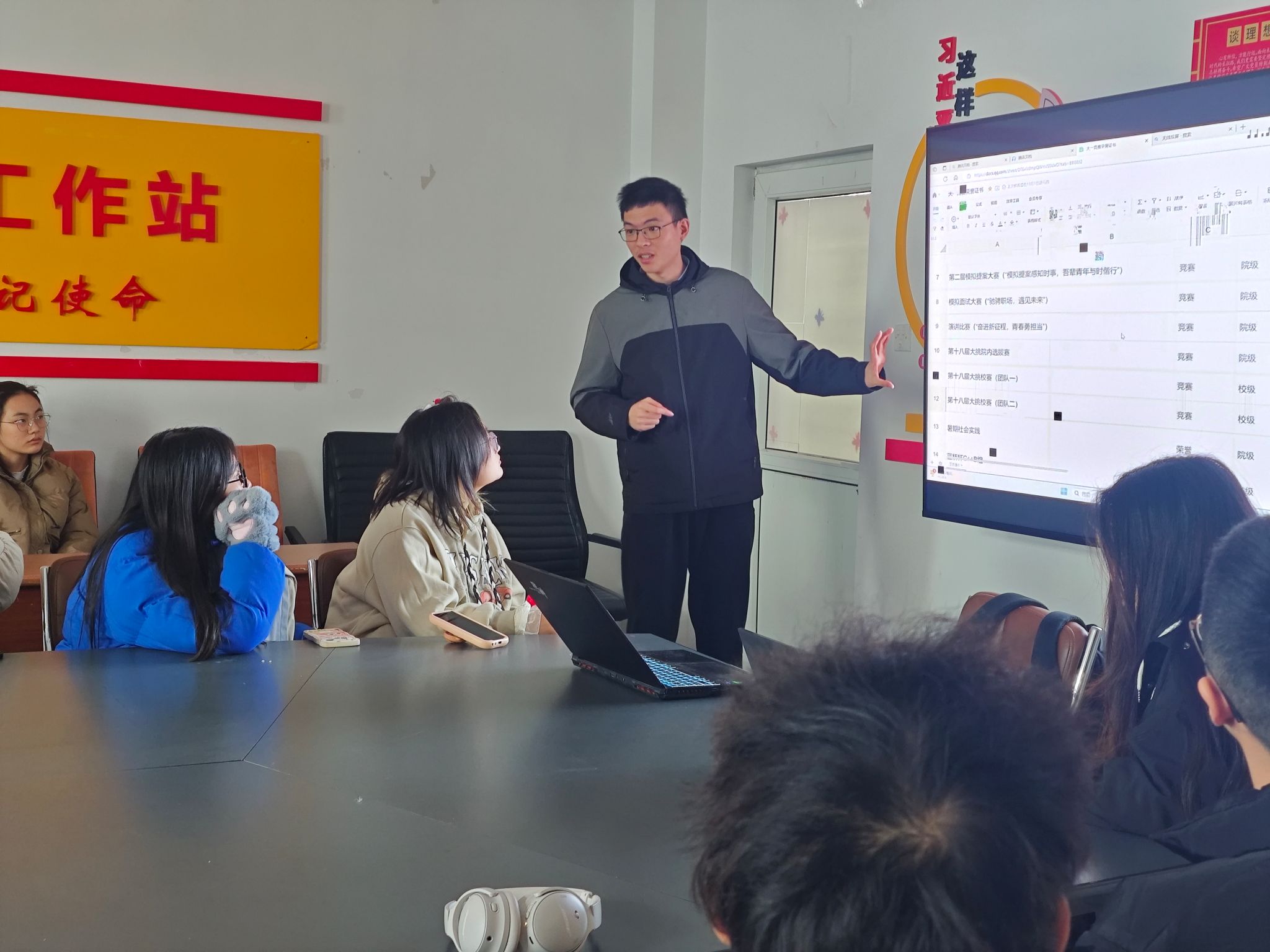 活动开始,彭晓宇开启了一场精彩纷呈的竞赛之旅介绍。他依次向大家介绍了众多学科竞赛,如以编程实力较量著称的蓝桥杯、在数学与实际问题间架起桥梁的数学建模大赛以及充满科技魅力与操控挑战的机器人竞赛等。针对每一项赛事,彭晓宇像是一位经验丰富的向导,引领着同学们深入其中。他的介绍让大家对赛事流程有了透彻且明晰的理解,为有志于投身竞赛的同学指明了前行的方向。