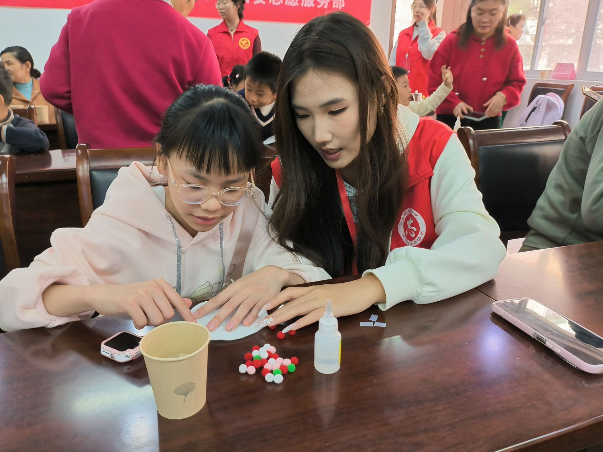 手工环节将活动推向高潮。在“巧手缝福·布艺饺”环节中,志愿者们耐心引导,孩子们兴致勃勃。彩色不织布、蓬松棉花在祖孙手中传递、协作。一双双苍老的手与一双双稚嫩的手默契配合,不仅制做出一个个憨态可掬的“布艺饺子”挂件,更编织了隔代之间无言的关爱与陪伴的乐趣。活动现场,笑声与探讨声不绝于耳,温情在指尖静静流淌。