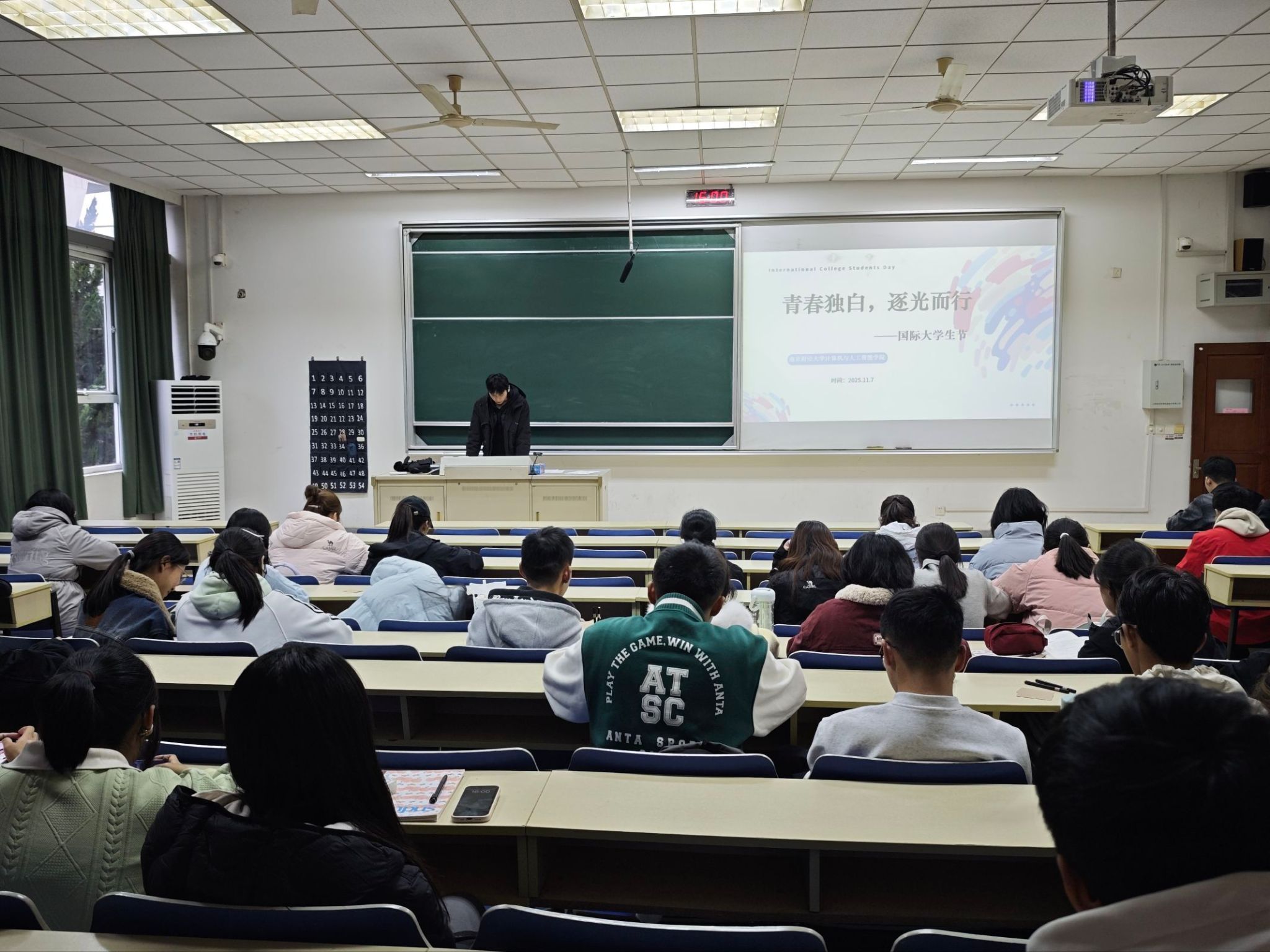 在德业楼113成功举办了一场独具匠心的国际大学生节主题活动。本次活动旨在点燃同学们青春的激情,唤醒他们肩负的责任与理想,照亮未来的人生航向。