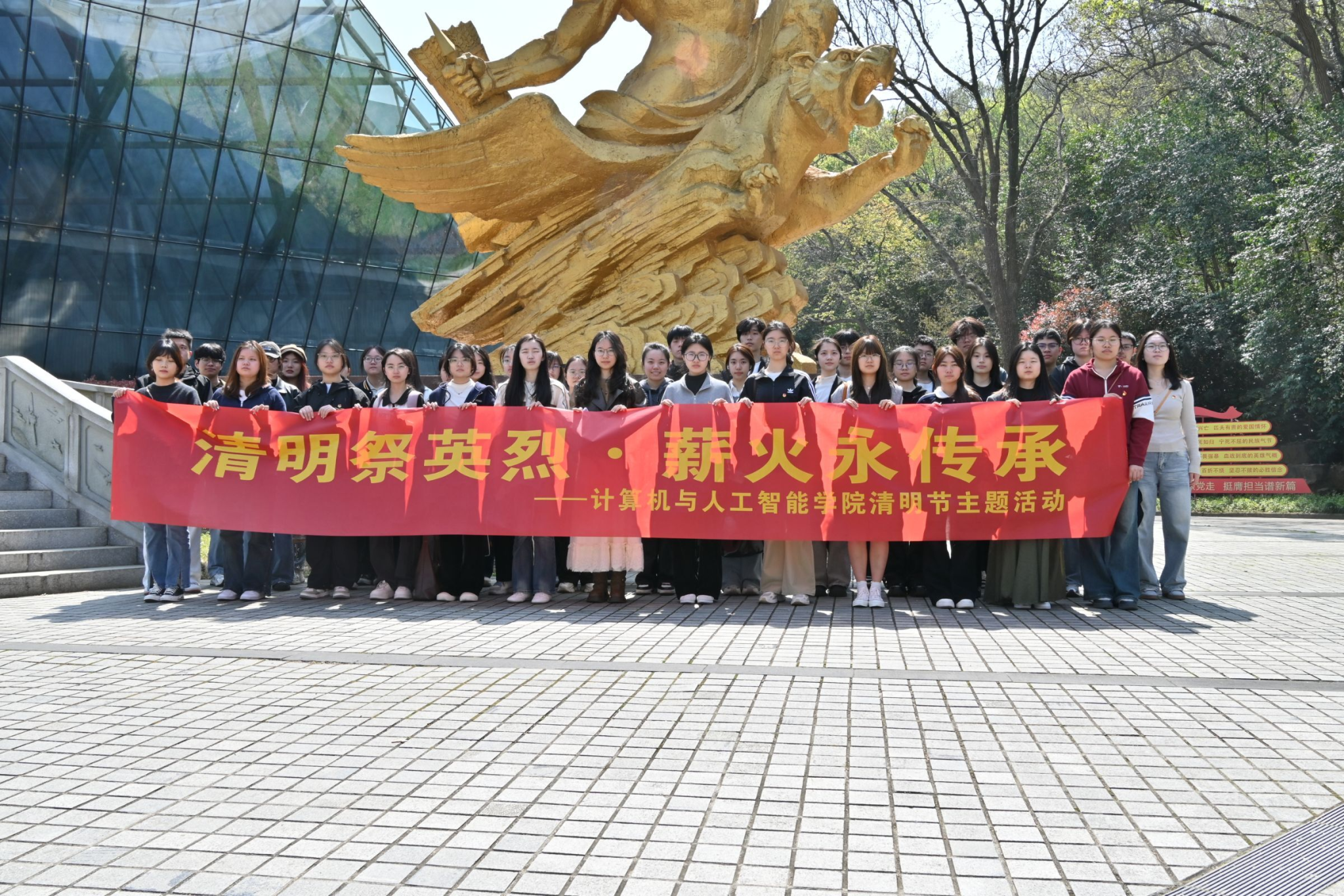 组织学子前往南京抗日航空烈士纪念馆,开展“清明祭英烈 青春铸忠魂”主题祭扫活动,以青春之名致敬抗日航空英烈,在追思与感悟中汲取奋进力量,厚植爱国情怀。