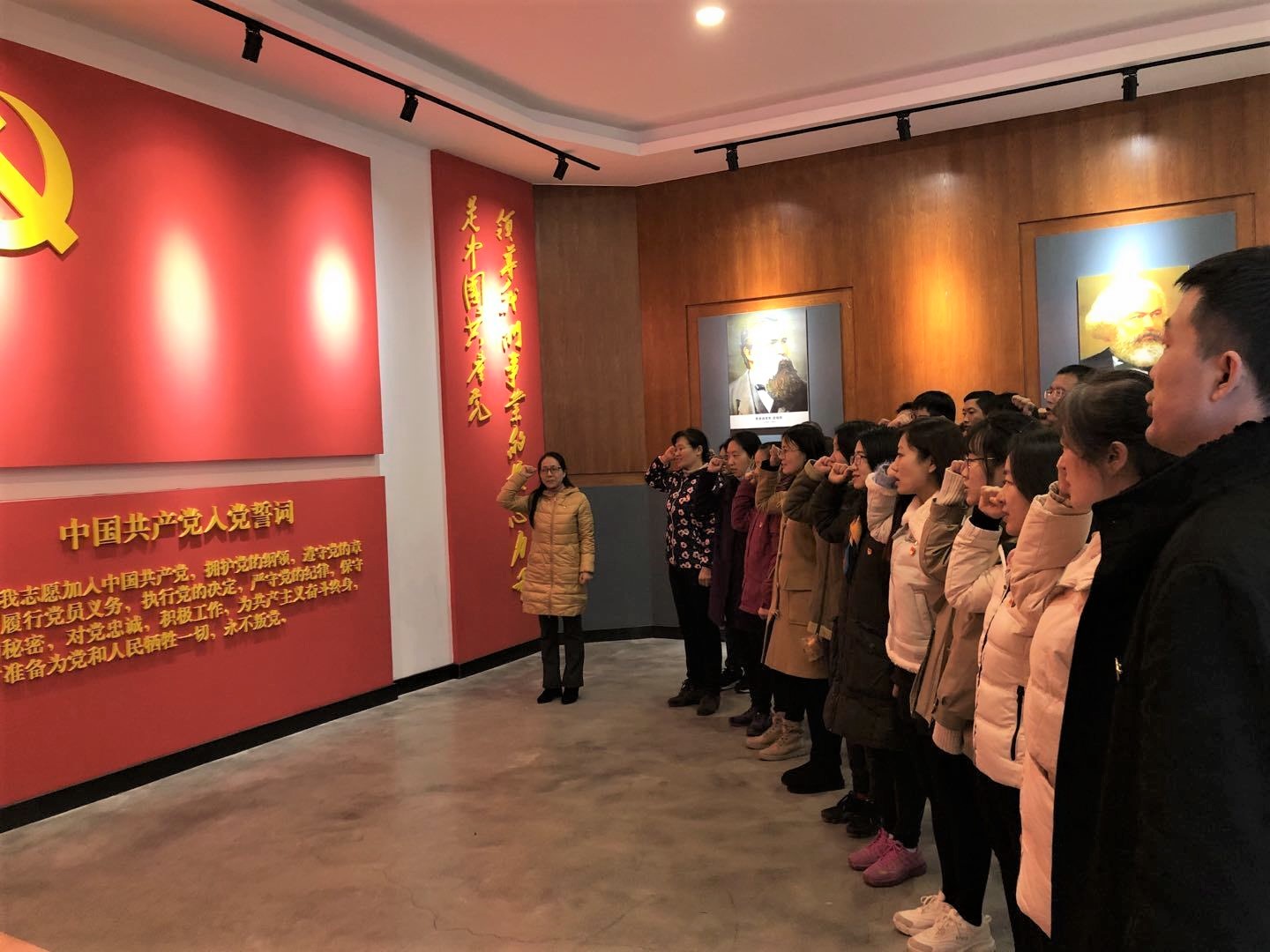 在党史国史教育馆和国防教育馆,大家深切感受到历史是最好的教科书”,“坚持和发展中国特色社会主义、把党和国家各项事业继续推向前进的必修课。”使命在前,责任在肩,党员教师们在誓词墙前再次重温入党誓词。