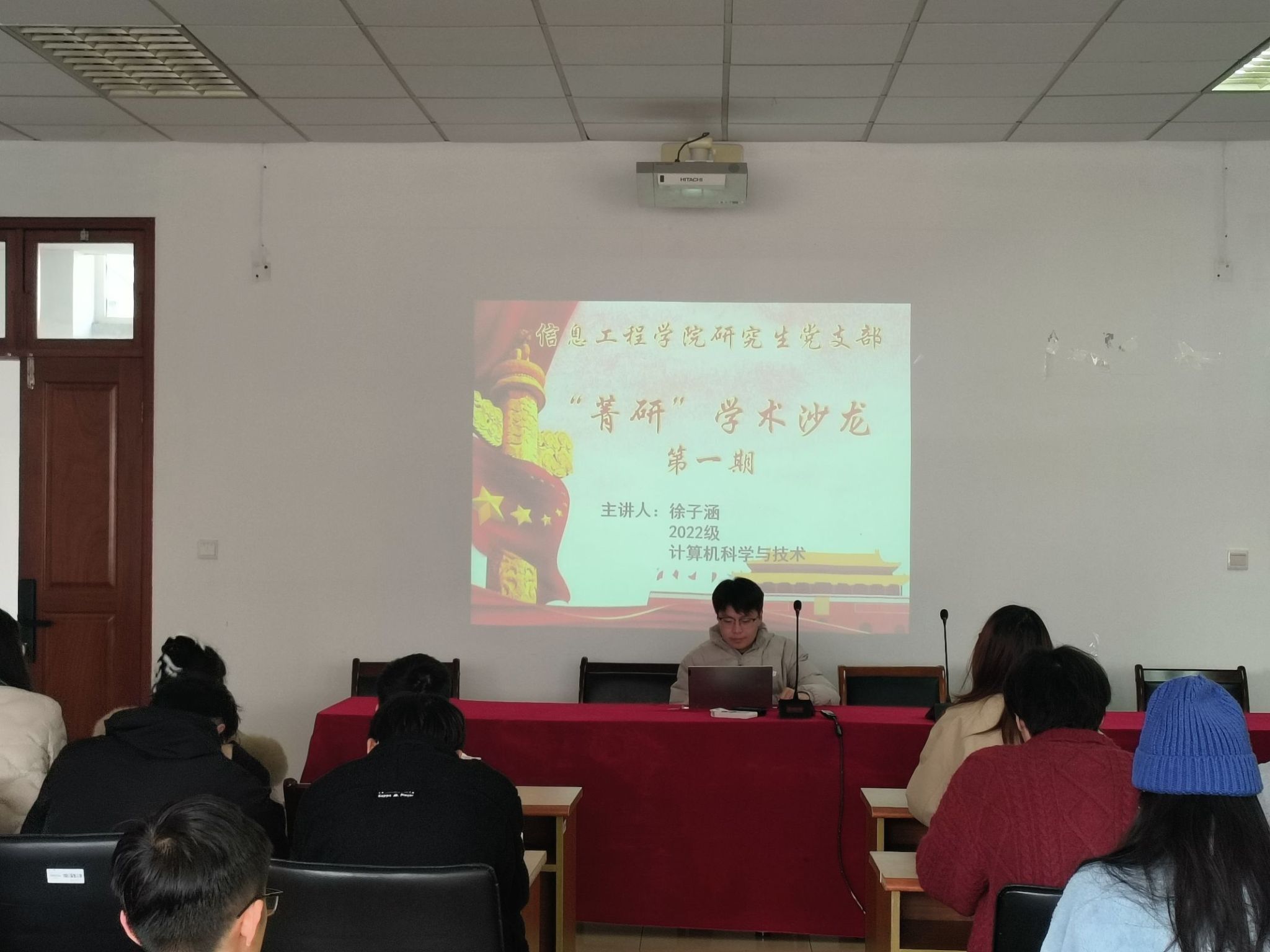 活动开始,徐子涵同学围绕“如何做好研究生学术研究”这一主题,结合自己在学术研究中的亲身经历与心得体会,为与会同学分享了宝贵经验。他从选题、文献综述、实验设计到论文撰写等方面进行了详细讲解,并特别强调了学术研究过程中可能会遇到的困难和挑战,以及如何通过持续的努力与创新精神克服难题,取得学术突破。
