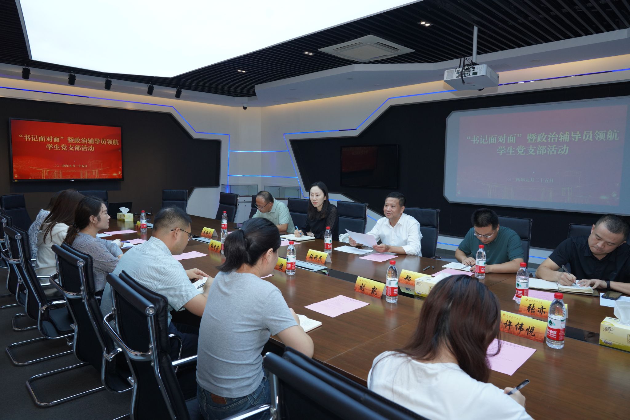 9月25日下午,校党委书记张利民到仙林校区17号研究生宿管站412寝室看望结对联系的学生宿舍的同学们,并在德业楼211会议室参加“书记面对面”暨政治辅导员领航学生党支部座谈会。党政办主任郑锷、党委研究生工作部部长郝园园、党政办副主任张亦佳、党委宣传部副部长秦韶华、信息工程巴比伦娱乐场