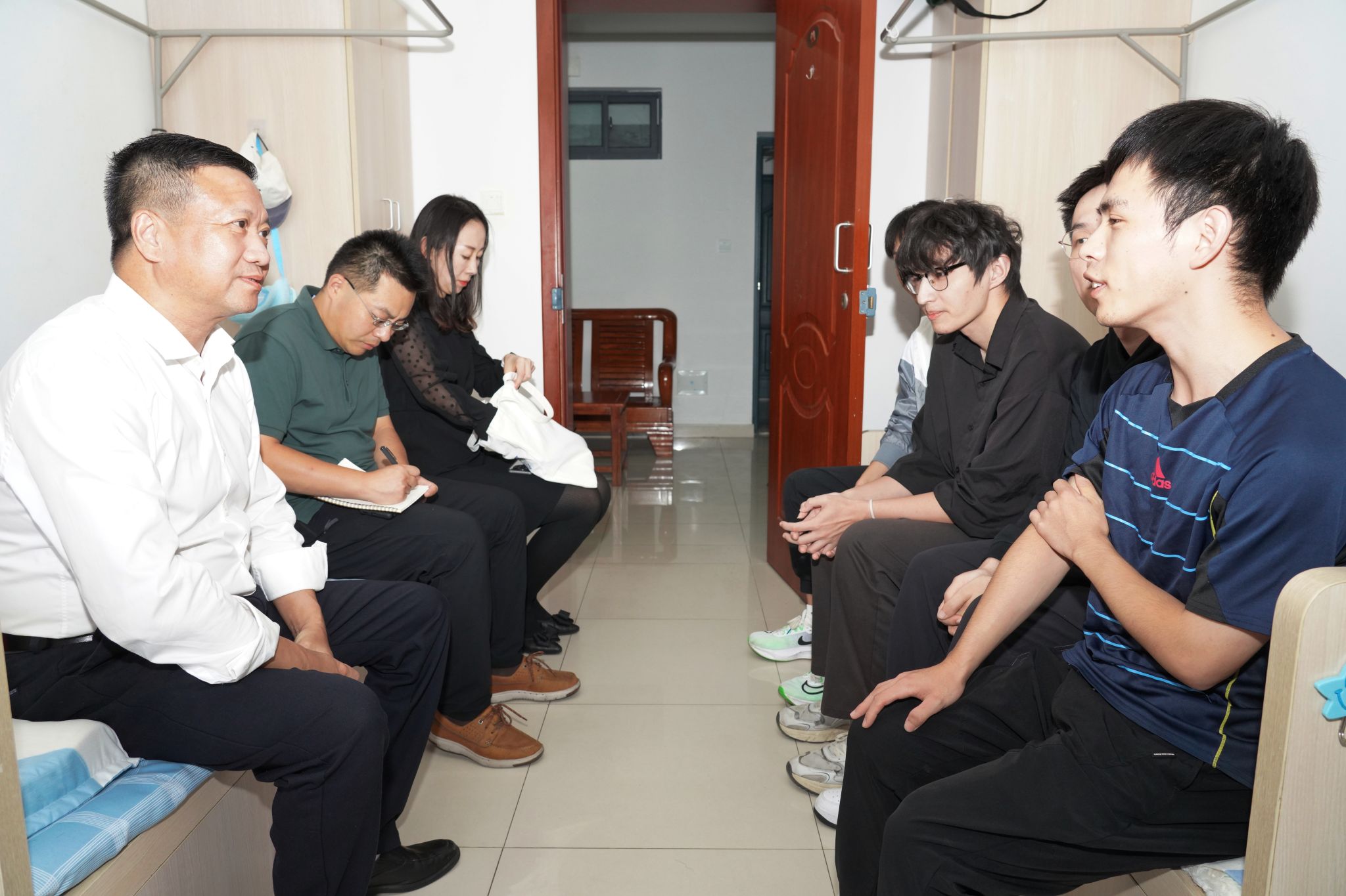 张利民书记到仙林校区17号研究生宿管站412寝室看望结对联系的学生宿舍的同学们