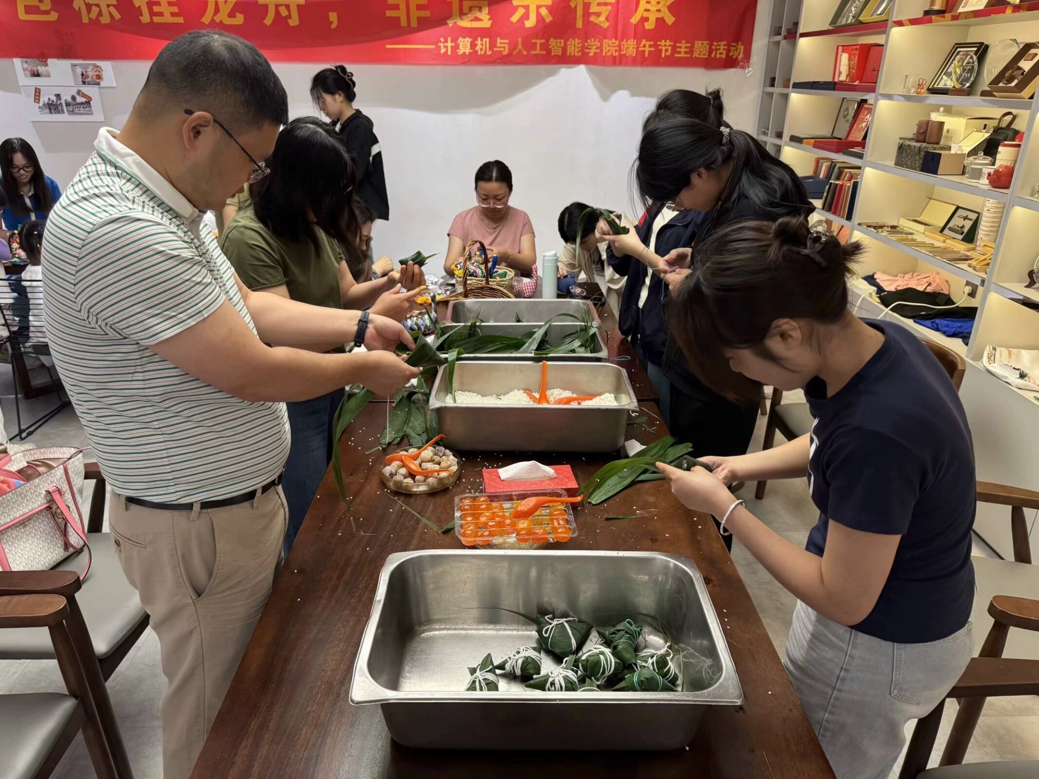 师生一起包粽子
