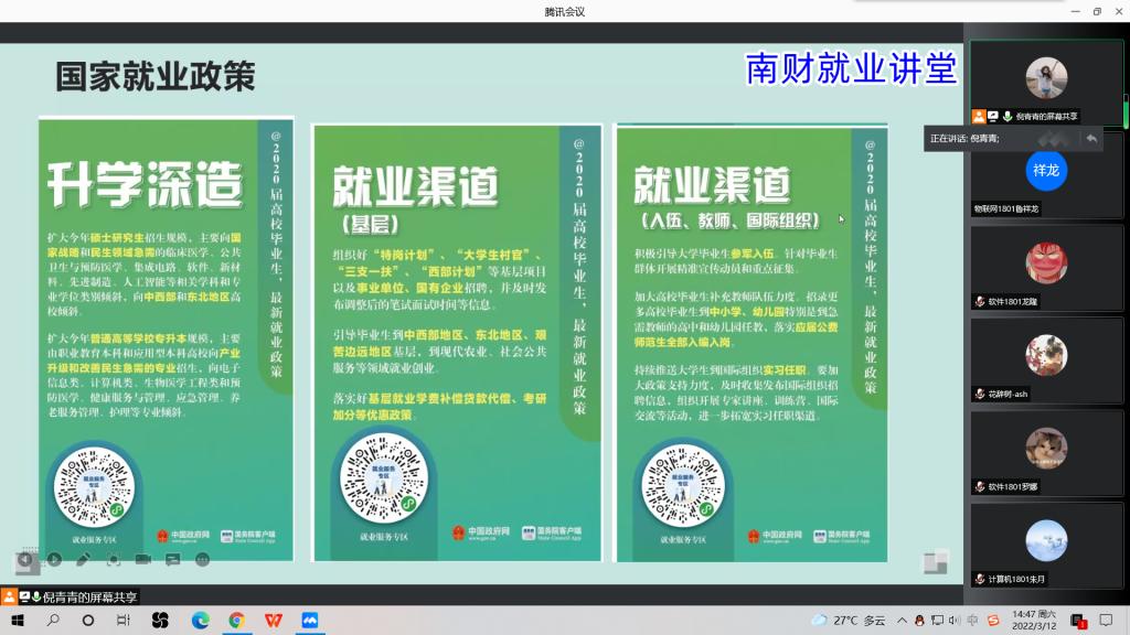 2022届毕业生进行就业教育云指导。